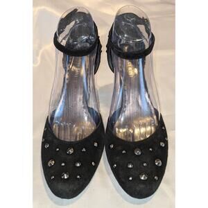 This is a Trendy Pair of Gianni Bini GB Women's Black Suede Studded Heels with Ankle Strap in Size 9.5M. they are very gently worn. Heel measures 3" high. In great condition. Please see pics for details.