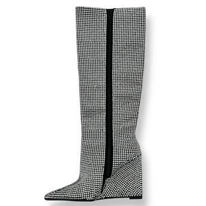 Gianni Bini Gabor Rhinestone Wedge Heel Knee Boots Womens Size 7.5 Pointy Toe