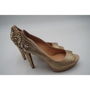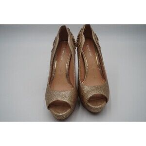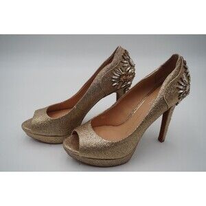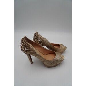 Gianni Bini Gold Rhinestone Embellished Peep Toe Stiletto Heel Platform Size 8M