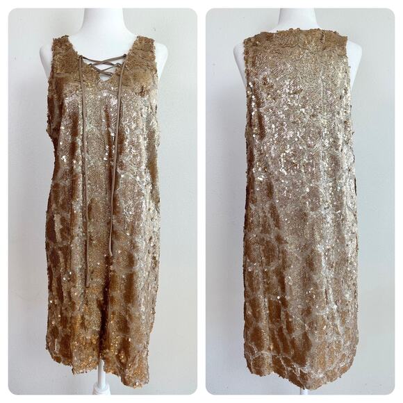 Gianni Bini Gold Sparkle Sequin Shift Dress size Large