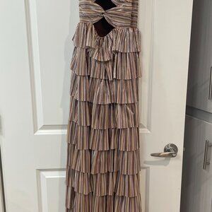 Gianni Bini Grace Metallic Plisse Sweetheart Neck Cut-Out Tiered Dress