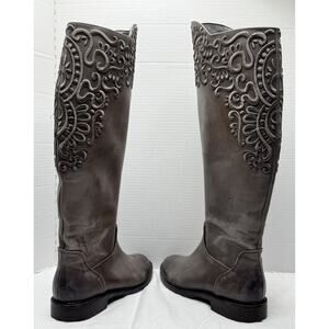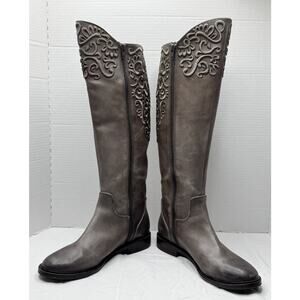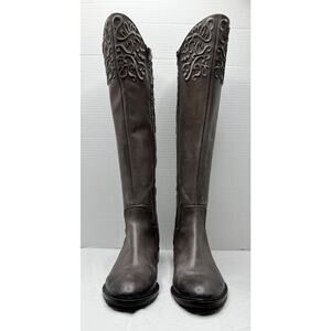 Gianni Bini Gray Taupe Leather Riding Style Knee High Boot Size 8.5 Embroidered