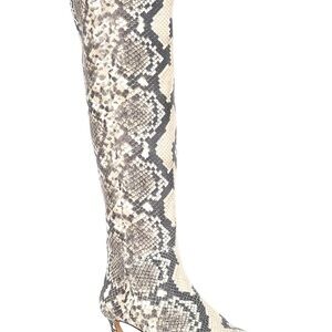 Elevate your style with these stunning over the knee boots from Gianni Bini, featuring a sophisticated gray and cream color palette. Crafted for both comfort and elegance, these boots are perfect for making a statement. The sleek design and high-quality materials ensure a timeless addition to your wardrobe.