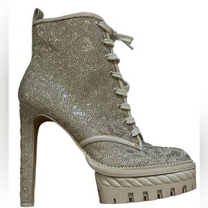 Gianni Bini Halland Glitzy Embellish Leopard Platform high Heels lace up Booties