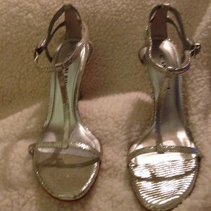 Metallic silver snake skin design heels. Would look great with anything you want to wear dress up for prom or with a pair of capris!