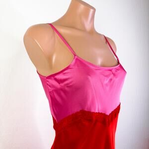 Gianni Bini X Dannijo Helena Satin Lace Maxi Slip Babydoll Dress Pink Red