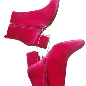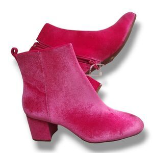 Gianni Bini Jaydenn Pink Velvet Block Heel Booties Leather Boots Size 6.5 NWT