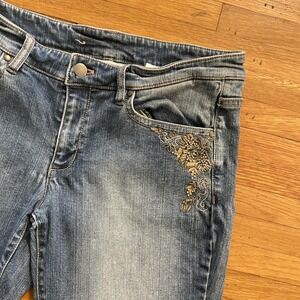 Gianni Bini Jeans Womens 29 Blue Flair Leg Embroidered Floral Embellished Denim