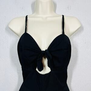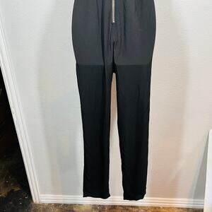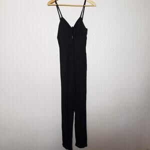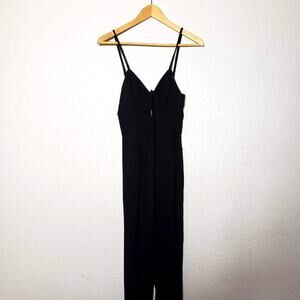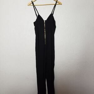 Gianni Bini Jumpsuit Keyhole Cutout - 4 in excellent condition. Black. Spaghetti strap top with tie and keyhole cutout detail at the bust. Full exposed zipper in the back.