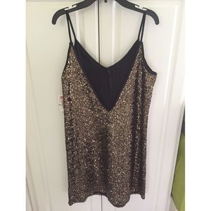 Gorgeous gold dress with thin straps. Can be worn alone or over a delicate blouse