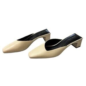 Gianni Bini Karlos Mules in Sweet Cream Sz 9M Square Croc Heel Minimalist Classic