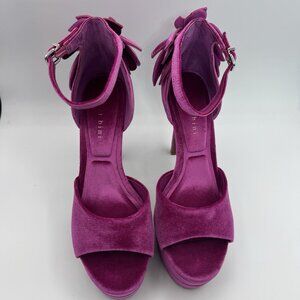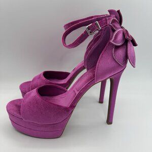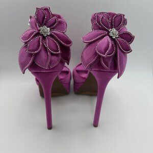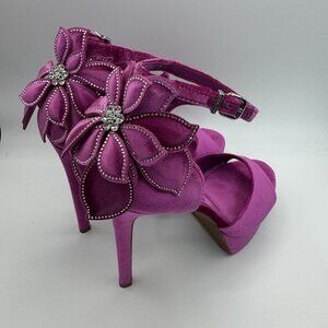 Gianni Bini Karmello Size 11 Fuchsia Velvet Rhinestone Floral Platform Stilettos