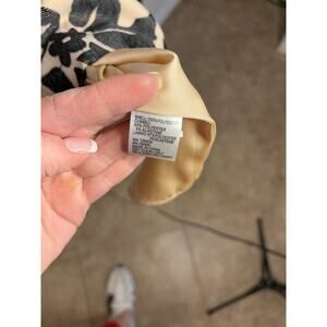 The Gianni Bini Kati Dress is a size 2 knee-length A-line dress featuring a geometric embroidery design in black and nude colors. It has short cap sleeves, a round neckline, and a zip closure. Made of polyester material, this lined dress is suitable for occasions like weddings and parties. The dress has a classic and elegant style, perfect for the summer, fall, and spring seasons.