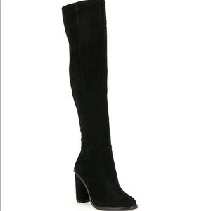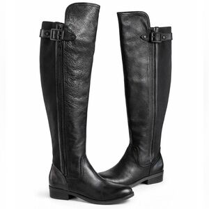 Gianni Bini Knee High Heel Boots Leather Snakeskin Blue Black Side Zip Sexy 7