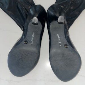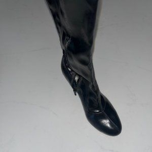From the bottom of the heel to the top is 14 inches. From the ground to the top is 17 inches.