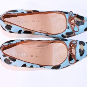 Gianni Bini Leopard calf hair heels complete with a bow.