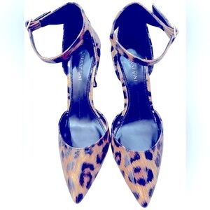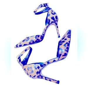 Gianni Bini Leopard Print Heels Size 6.5 Ankle Straps Pointed Toe