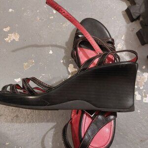 Gianni Bini Lilian Wedge Sandals Size 8M Pink & Black