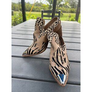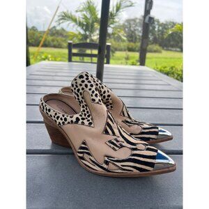 Gianni Bini Maerren Women Leather Zebra Print Western Mule Size 8m