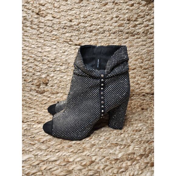 Gianni Bini Mareesha Black Silver Rhinestone Peep Toe Heeled Ankle Boots Sz. 7.5