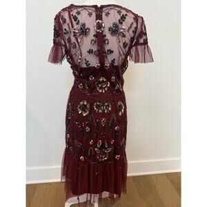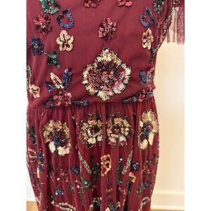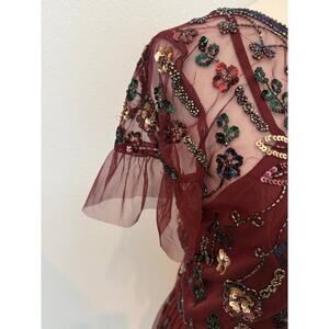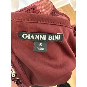 Gianni Bini Maroon/Burgundy Floral Sequin Knee Length Dress Sheer Overlay 6
