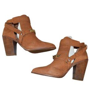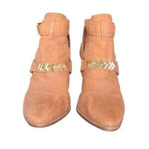Gianni Bini Metal Studded Booties Cognac Leather Womens Size 7 Boho Fall Western