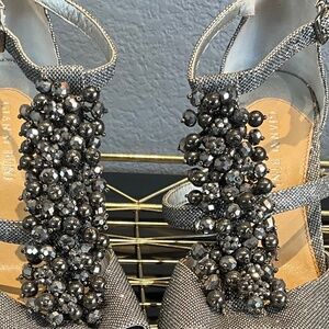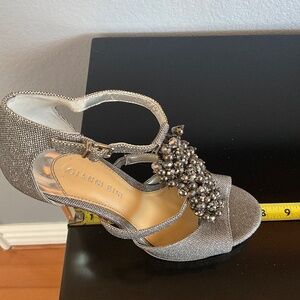 Gianni Bini Metallic Platform Heel Sandals Beaded Party Event Holiday Silver 7M
