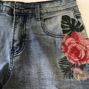 Gianni Bini Mid Rise Floral Embroidered Raw Hem Denim Shorts Size Small