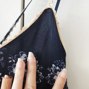 Gianni Bini Midi-Maxi Navy Blue Floral Ruffle Slip Dress Size M