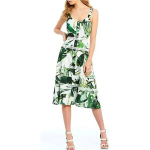 Gianni Bini Monica A-Line Midi Dress Ivory Palm Size 12 NWT