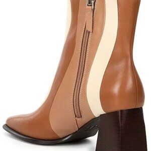Multicolor Leather ankle bootie with block heel