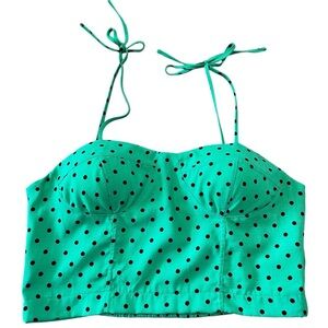 Gianni Bini NWT Junior’s XL Green Crop Cami Top Black Polka Dot Summer Retro