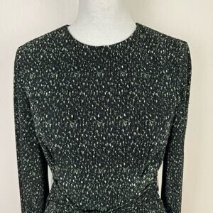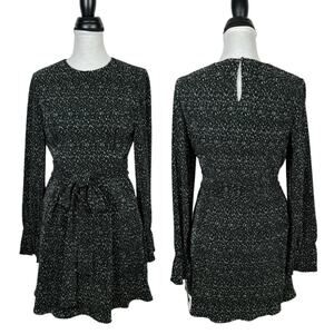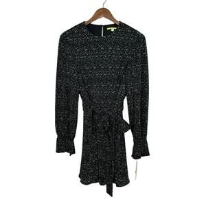 Gianni Bini | NWT Mica Tie Front Black Green Textured Long Sleeve Mini Dress