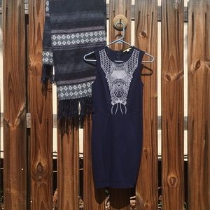 Gianni Bini Navy Embroidered Boho Chic Dress XS