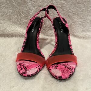 Gianni Bini Neon Pink Black Python Print Heels sz 8.5
