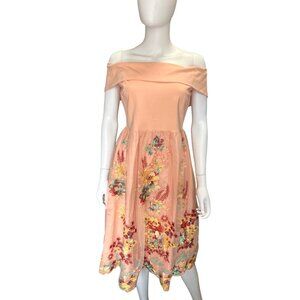 Gianni Bini Off-Shoulder Dress Women’s S Apricot Fit Flare Embroidered Floral
