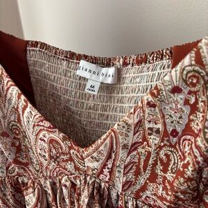 #GianniBini #FallDress #AutumnFashion #PaisleyDress #BohoDress #PumpkinSpice #FallColors #TieredDress #MediumDress #FallOutfit #BohoChic #RustDress #FallVibes #WomensFashion #NWT