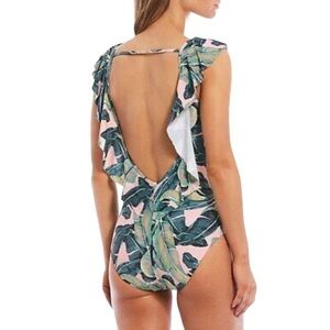 Gianni Bini Palm Print Ruffle Plunge Swimsuit SzXS
