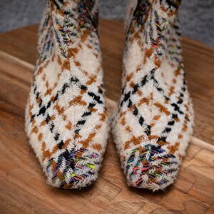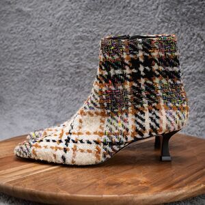 Gianni Bini Palmero Flannel Plaid Black Ankle Zip Booties Boot Kitten Heel 6 M