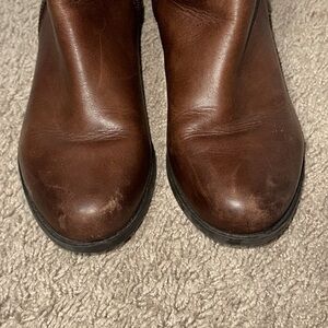 Gianni Bini Picard Lattice Back Brown Knee High Boots Size 6.5M pre-owned, some peeling inside boots see pics.