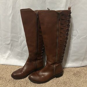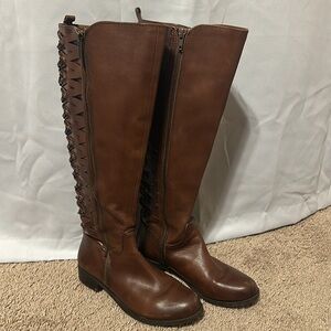 Gianni Bini Picard Lattice Back Brown Knee High Boots Size 6.5M