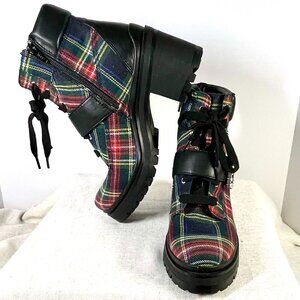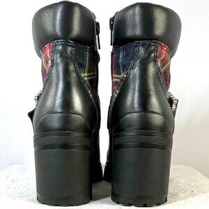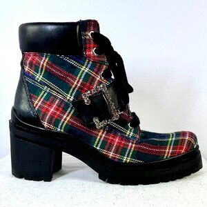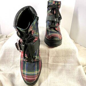 Gianni Bini Plaid Combat Boots Chunky Heel Rhinestone Buckle Ankle Boots Size 9M