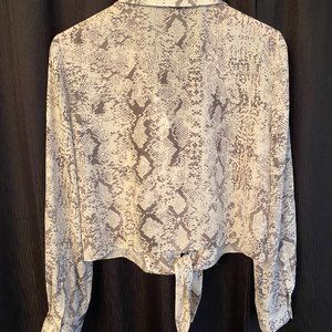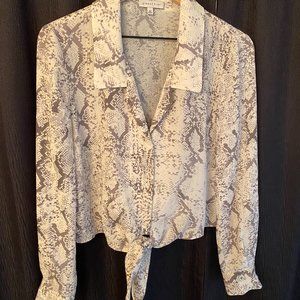 Used-Like New Gianni Bini Rebecca Snake Print Polyester Button Front Tie Hem Blouse - Size Medium (6-8). Clean and from a smoke-free home.