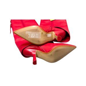 Gianni Bini Red Fold-Over Knee-High Heeled Boots Women 6M Leather NWOB