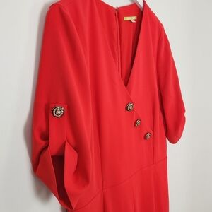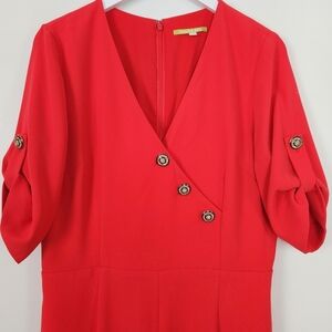 Gianni Bini Red V-Neck Pockets Tab Short Sleeve Jumpsuit Size 12