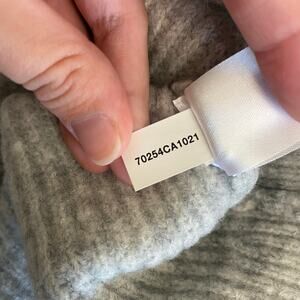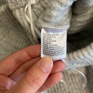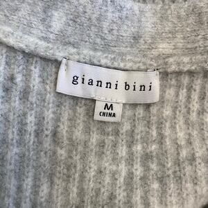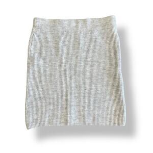 Gianni Bini two-piece ribbed sweater set. Includes a soft gray cropped button-up cardigan (size M) and a matching high-waisted mini skirt (size L).