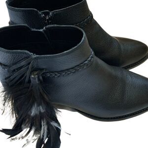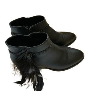 Gianni Bini Rorrie Black Leather Feather Zip Ankle Booties 8.5