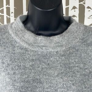 Gianni Bini Ruffled Cropped Sleeve Crewneck Fuzzy Sweater M Gray