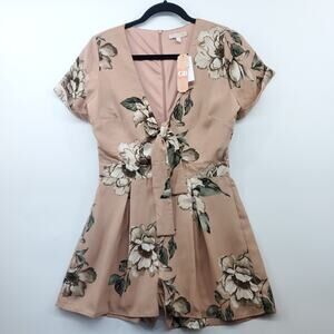 Gianni Bini Sand Floral Front Tie Romper Shorts Small New