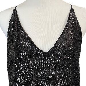 Gianni Bini Sequined Y2K Rave Black Tank Size Small